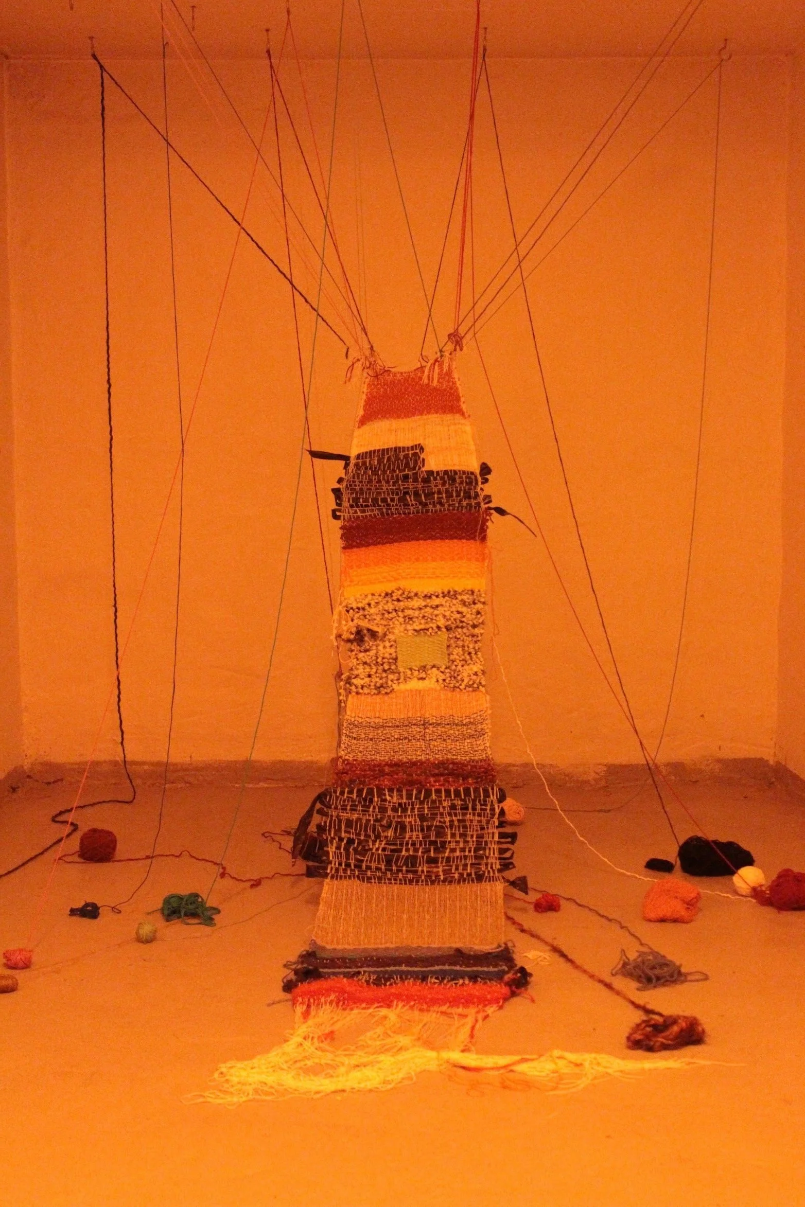 Weaving, coloured light, a plastic sheet.